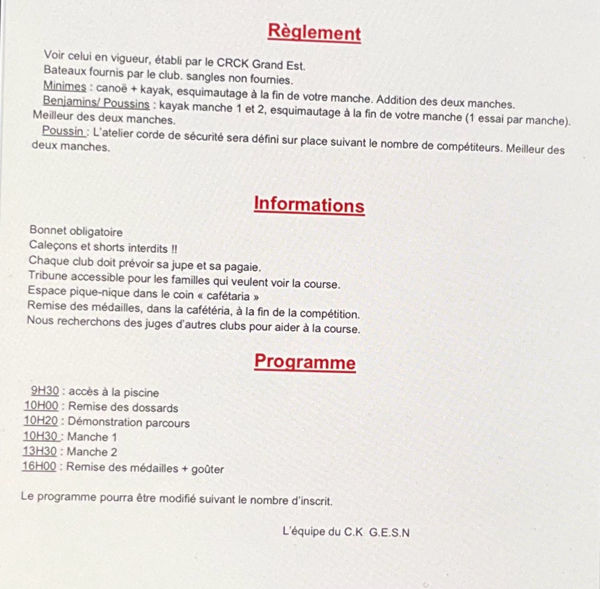 Rdv au club à 8h15, retour vers 17h30